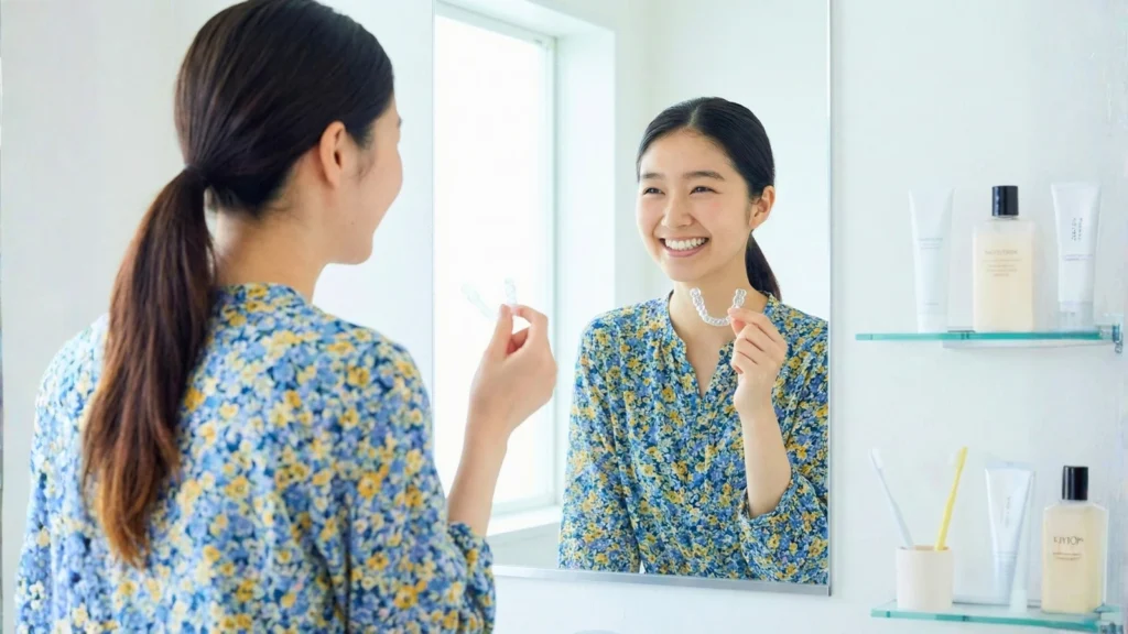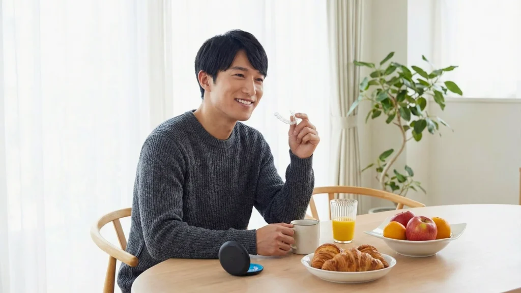 さらに透明なマウスピースであるため目立ちにくく、日常生活や仕事でも気にせず過ごすことができます。
