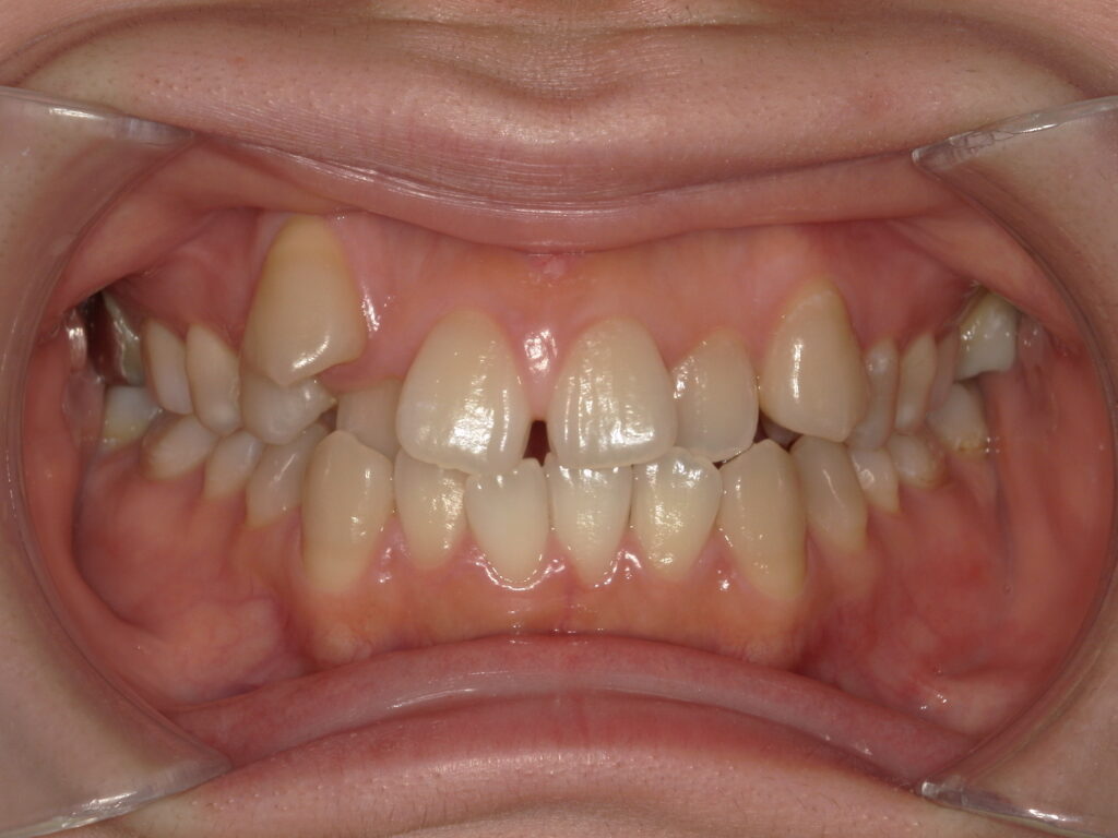 デコボコの矯正。上下の歯を抜かずに歯を並べました。